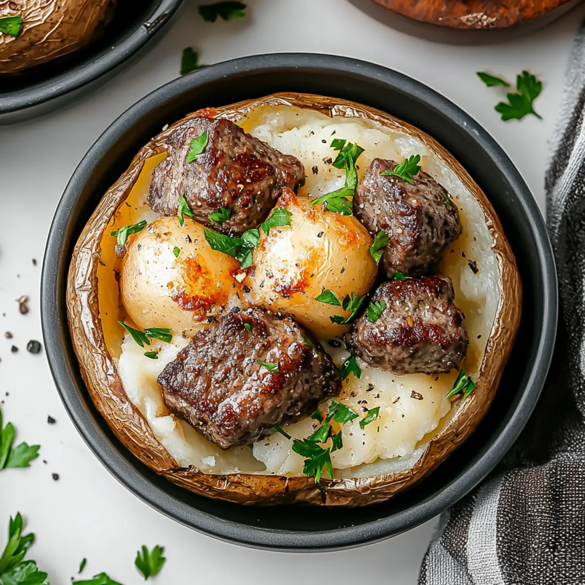 These Loaded Baked Potatoes with Steak Bites are perfect for meal prep enthusiasts! You can wash, scrub, and season the russet potatoes up to 24 hours in advance. Just wrap them in cling film or store in an airtight container in the refrigerator to maintain freshness. The steak bites can also be prepped ahead: season them and store in the fridge for up to 3 days before cooking. When you’re ready to enjoy this comforting dish, simply bake the potatoes, sear the steak, and assemble with cheese. This way, you'll save precious time on busy weeknights while still serving a delicious meal that feels just as special!